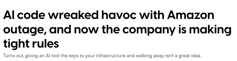 But just take a look at the recent AWS outages where coding agents were heavily involved.