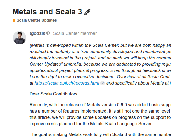 Currently working on Metals as one of the main contributors as a part of the collaboration between VirtusLab and Scala Center.