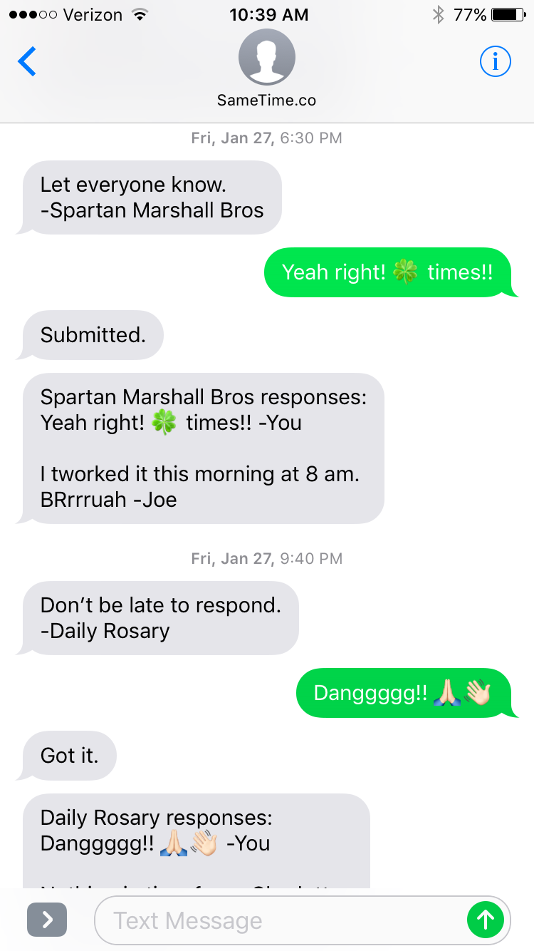 A FREE TEXT SERVICE TO REMIND YOU AND YOUR FRIENDS TO DO SOMETHING AT THE SAME TIME.