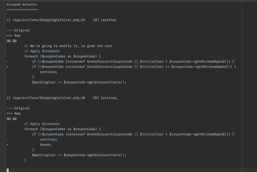escaped mutants - your tests covered this line, but didn't fail with the mutation