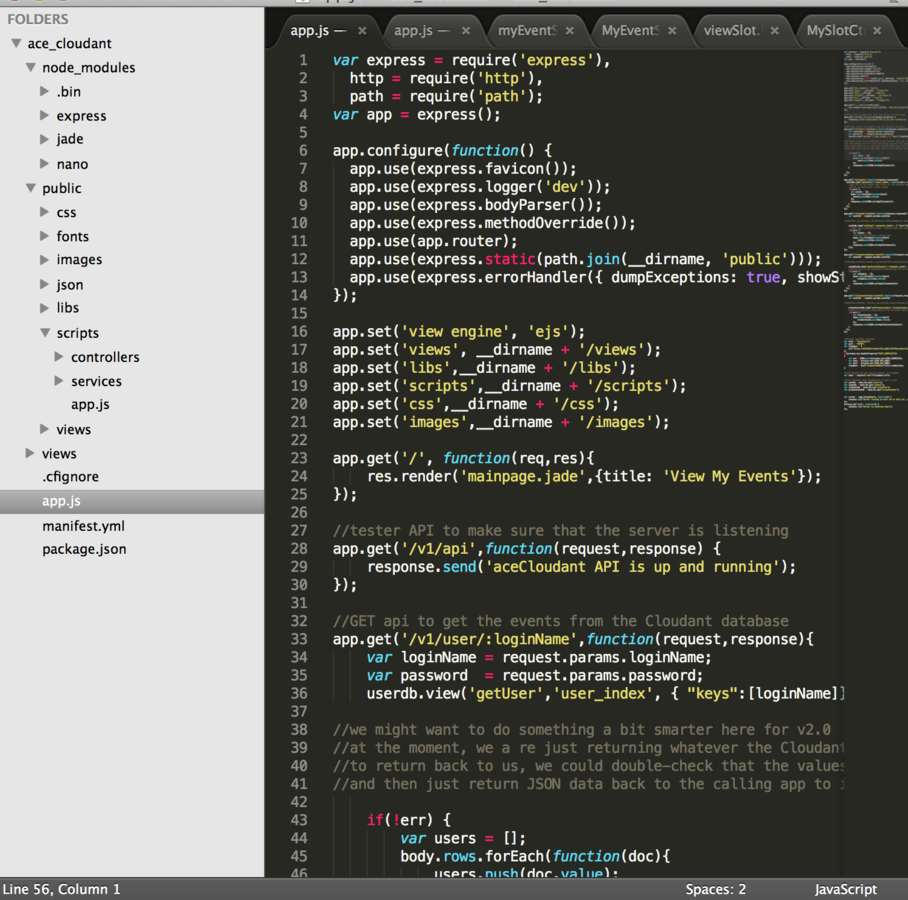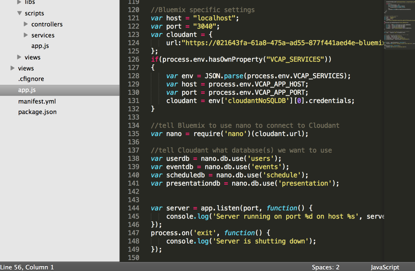 We use ExpressJS to expose REST API calls, within them we connect to Cloudant and retrieve the required data.