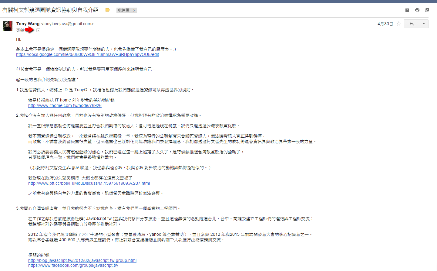 寫信給某台大教授的全文