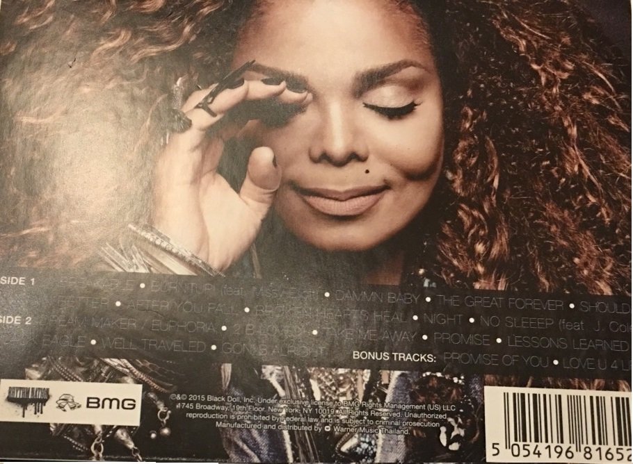 Much like the other album covers, the artist is a key part. Here Janet is portrayed as regal and powerful, with her long hair, glowing skin and jewellery. The colours aren't too bright, yet they add in with the regal tone of the piece.