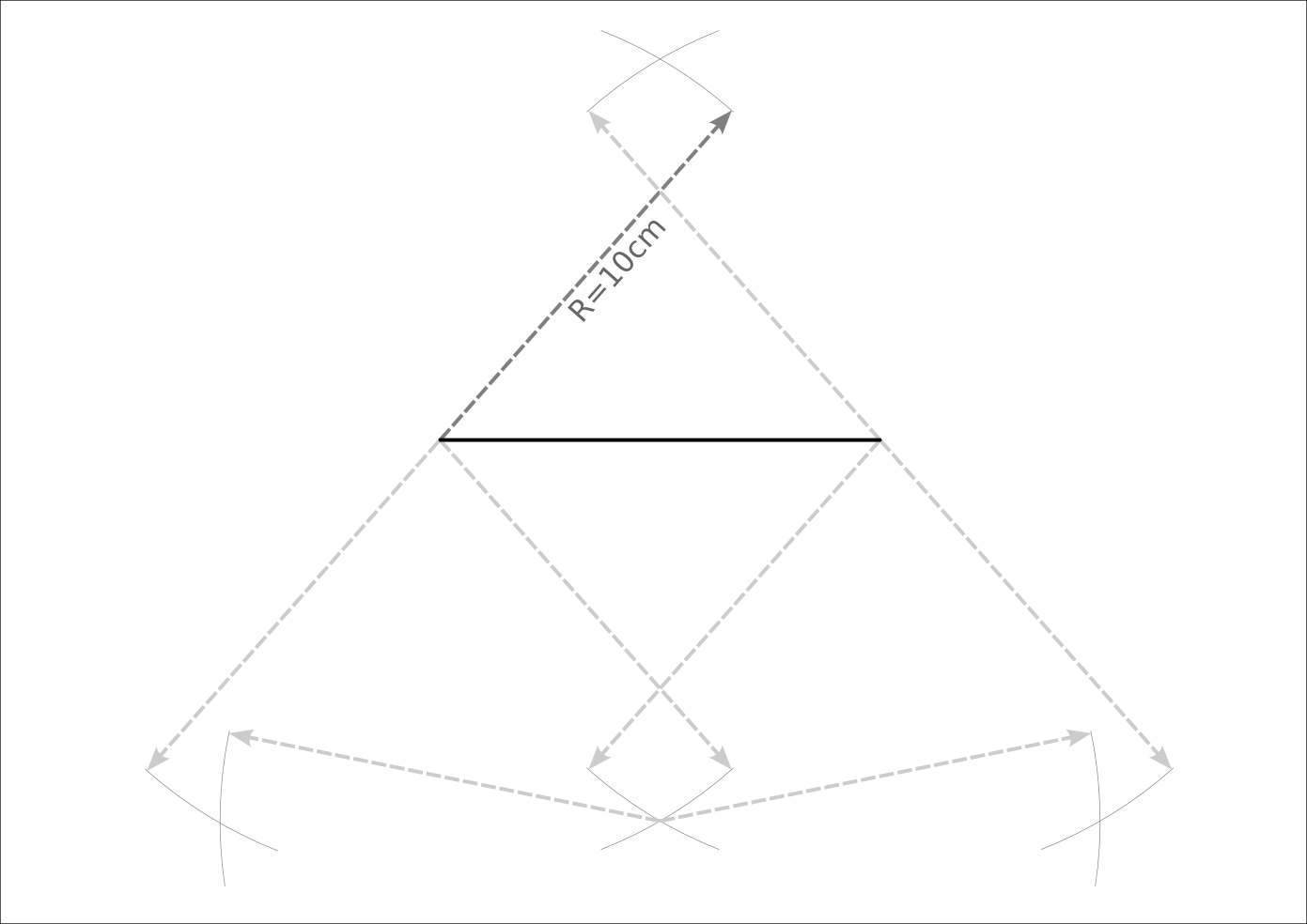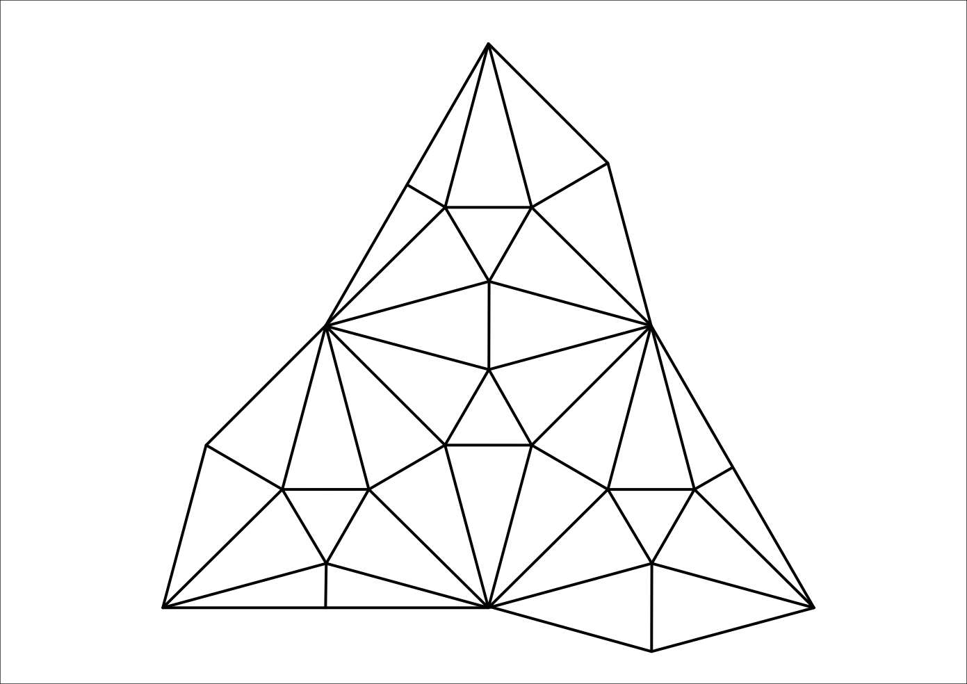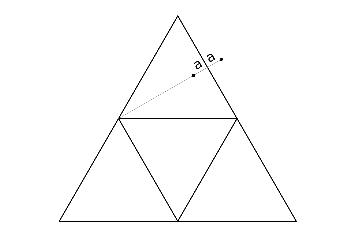 На основе чертежа получим развертку тетраэдра. Красные линии соответствуют насечкам, серые треугольники — клапанам, предназначенным для склейки тетраэдра.