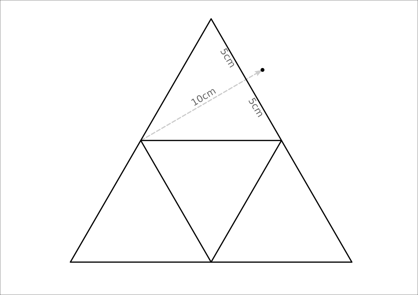 Отметим точку, соответствующую концу отрезка длиной 10 см., начинающегося в вершине треугольника и проходящего через середину противоположной стороны.