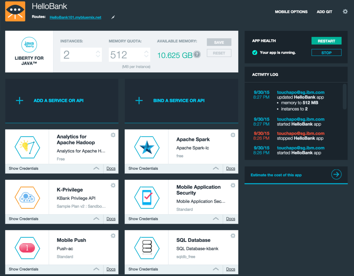 - All services are connectible from outside Bluemix