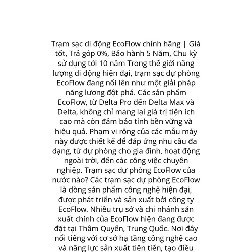 Website: https://ecoflowvietnam.com/tram-sac-ecoflow/. Trạm sạc di động EcoFlow chính hãng | Giá tốt, Trả góp 0%, Bảo hành 5 Năm, Chu kỳ sử dụng tới 10 năm Trong thế giới năng lượng di động hiện đại, trạm sạc dự phòng EcoFlow đang nổi lên như một giả