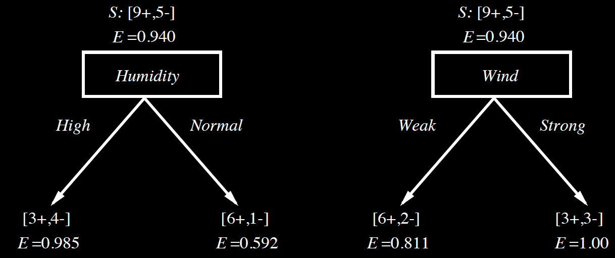 \[ Entropy(S) = -p_+log_2(p_+)-p_-log_2(p_-)\]
