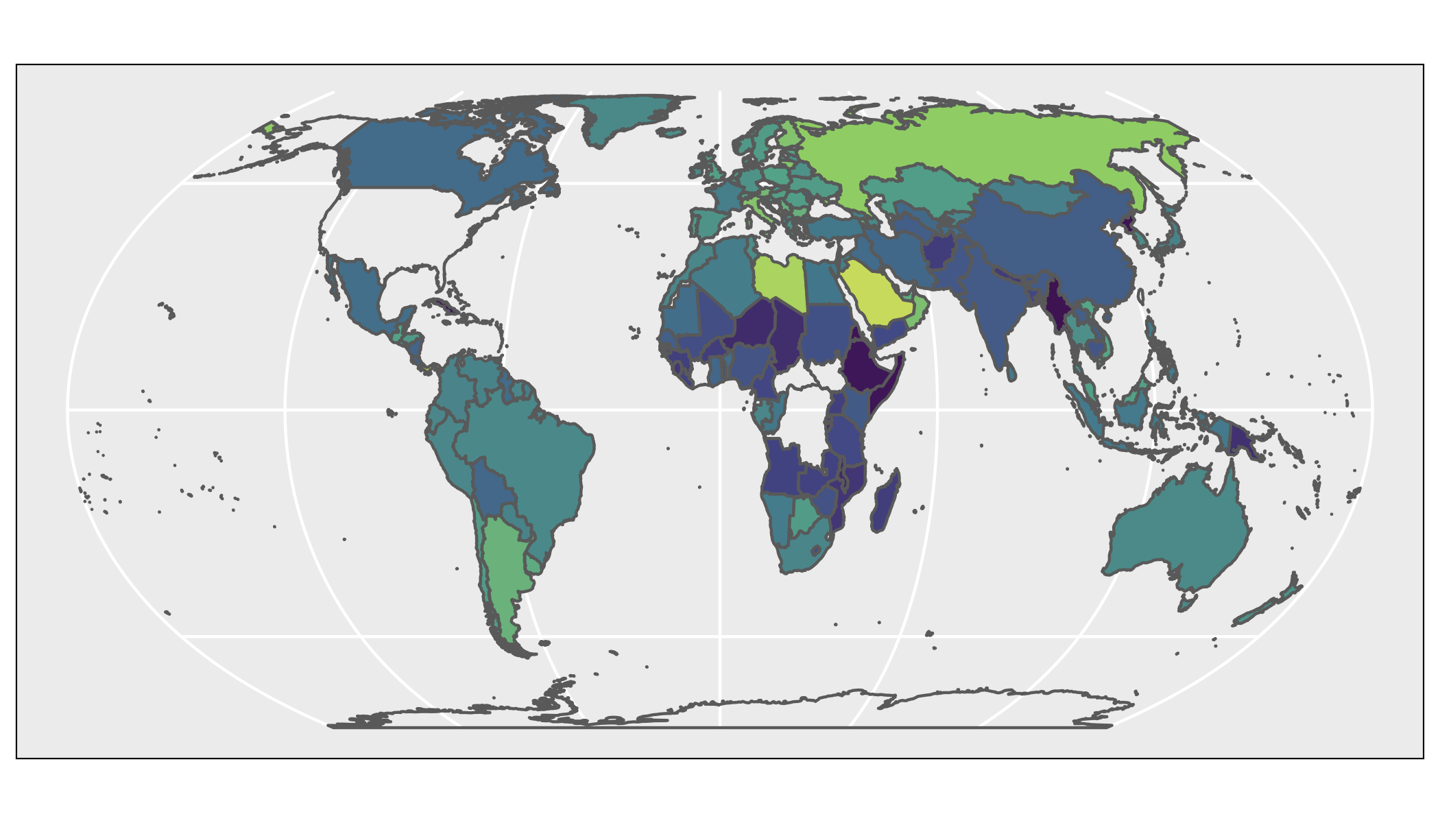 coord_sf(crs = "+proj=eqearth +wktext")+ labs(y = NULL, fill = NULL)+ theme(axis.title.y = element_blank(),