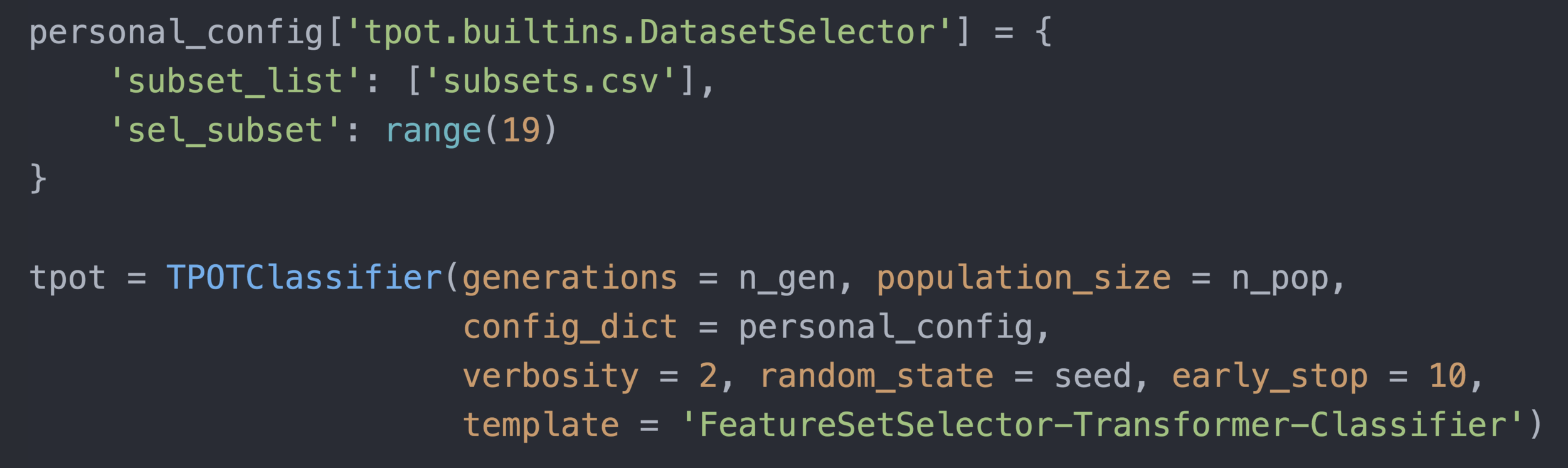 GP primitive Dataset selector, Feature selector & preprocessor, Supervised classifier/regressor