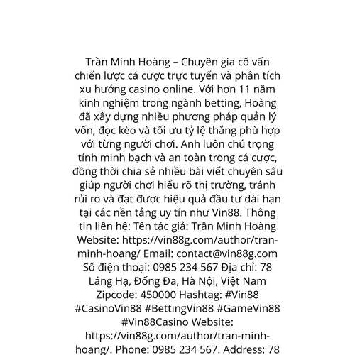 Website: https://vin88g.com/author/tran-minh-hoang/. Trần Minh Hoàng – Chuyên gia cố vấn chiến lược cá cược trực tuyến và phân tích xu hướng casino online. Với hơn 11 năm kinh nghiệm trong ngành betting, Hoàng đã xây dựng nhiều phương pháp quản lý vố