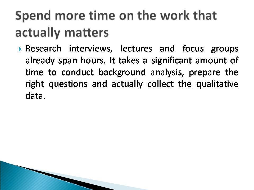 While nearly every academic sees the benefit in digital recordings, there’s a caveat: Digital recordings require a painstaking amount of time to review. When listeners are ready to analyze the material, they have no choice but to listen intently to capture every detail as they type furious notes and continuously rewind to double check statements.