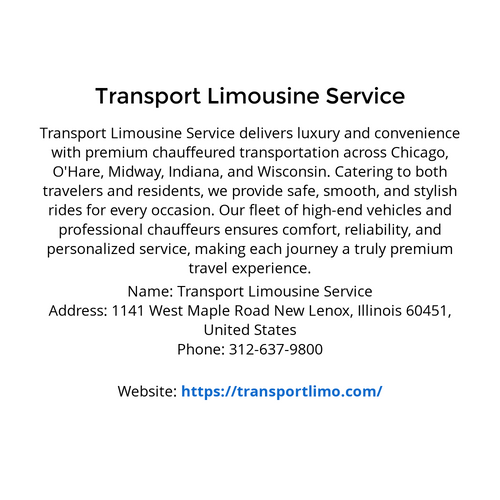 https://transportlimo.com/ Transport Limousine Service offers luxury chauffeured rides to Chicago, O’Hare, Midway, Indiana, and Wisconsin, delivering comfort, style, and premium travel.