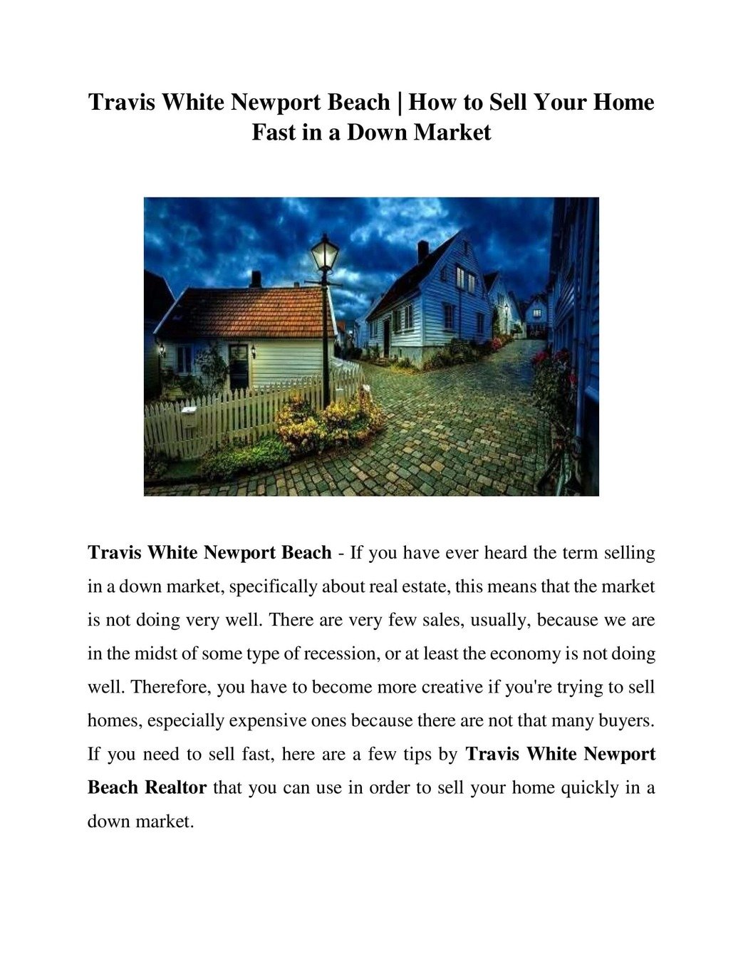 Travis White Newport Beach - Selling your house in a down market. If you are selling your home, learning how to stage it properly is essential. Good staging can make or break a showing, so read on to learn how to stage your home beautifully!
