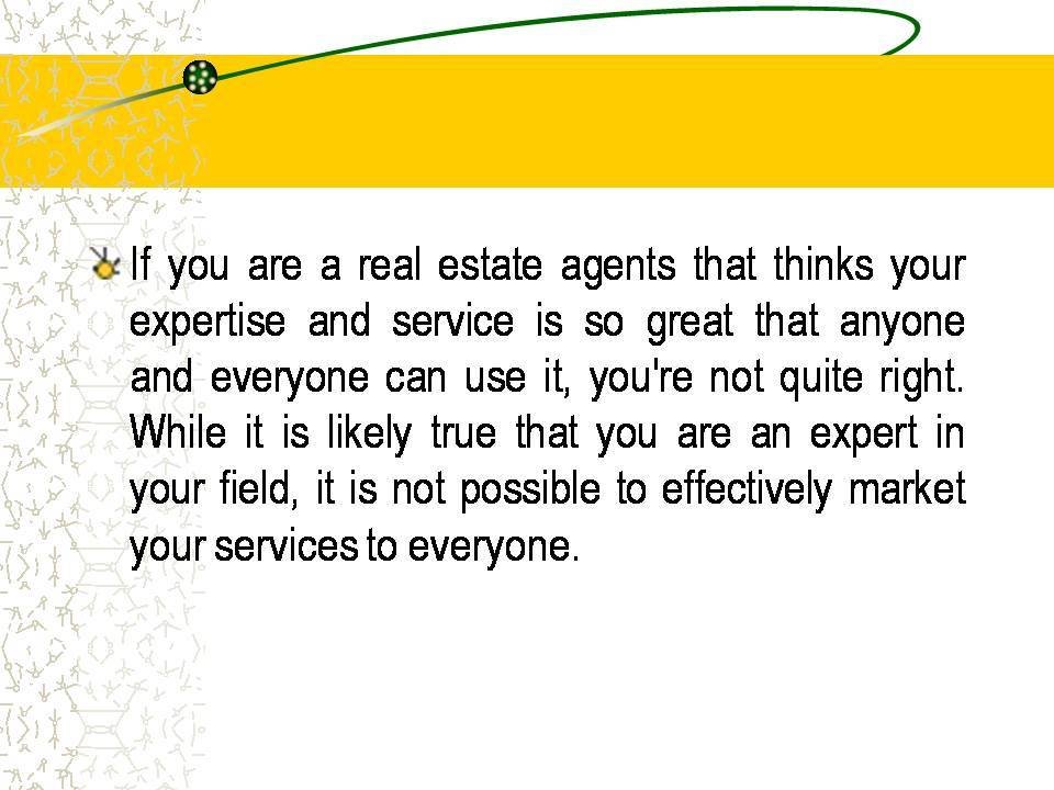 If you are a real estate agents that thinks your expertise and service is so great that anyone and everyone can use it, you're not quite right. While it is likely true that you are an expert in your field, it is not possible to effectively market your services to everyone.