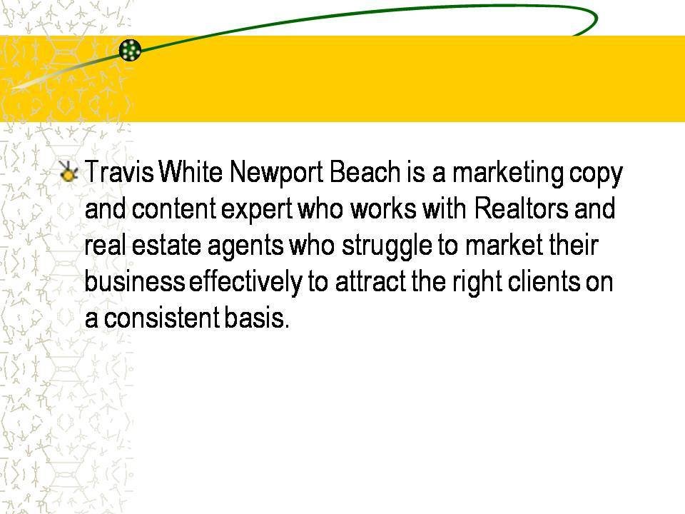 From Newport Beach Travis White is an acclaimed innovator and technological pioneer within the real estate industry.