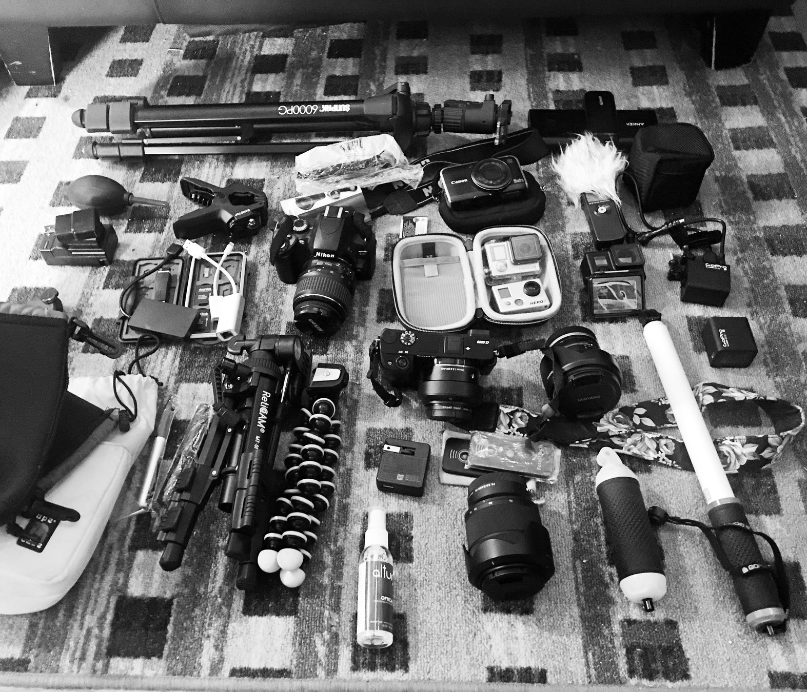 With time you accumulate some of the extras; A tripod, camera bag, stabilization units and such.