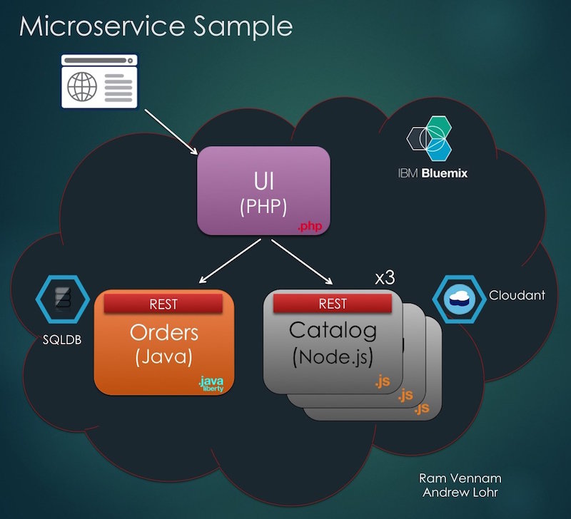 - Demo of implementing a Microservices Architectured App on Bluemix