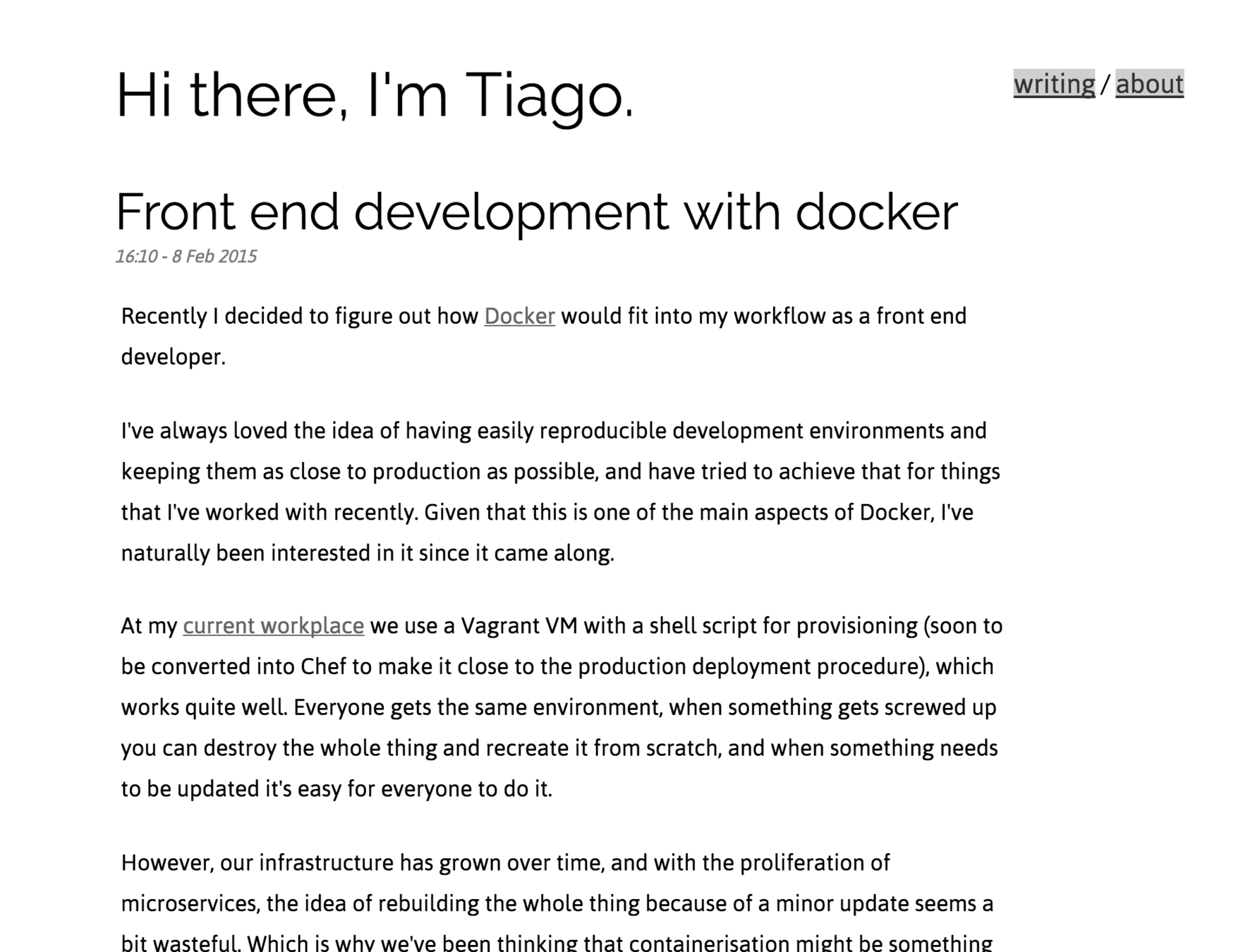 This was an interesting experiment but until a way to fix the NFS file share issue comes along, I probably won't be using Docker for any kind of front end development.