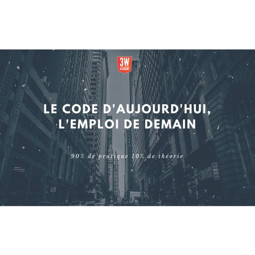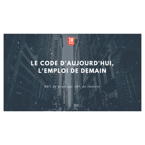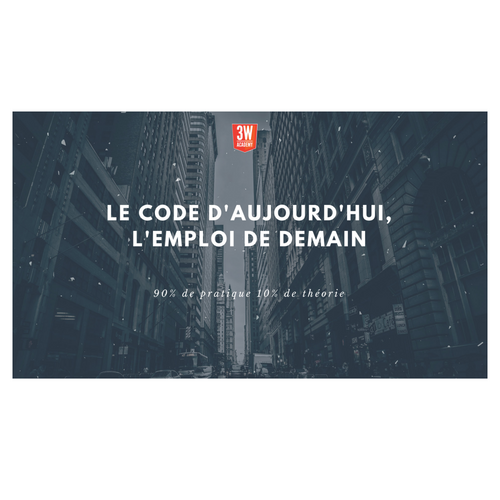 Présentation de la 3W Academy Réunion d'information - chaque mardi à 18h au 46 rue René Clair 75018 - chaque mercredi à Lyon, Nantes, Marseille, Strasbourg contact@3wa.fr https://3WA.fr