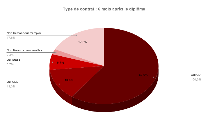 - 6 mois après le diplôme, 50 % gagnaient plus de 20 000 euros par an
