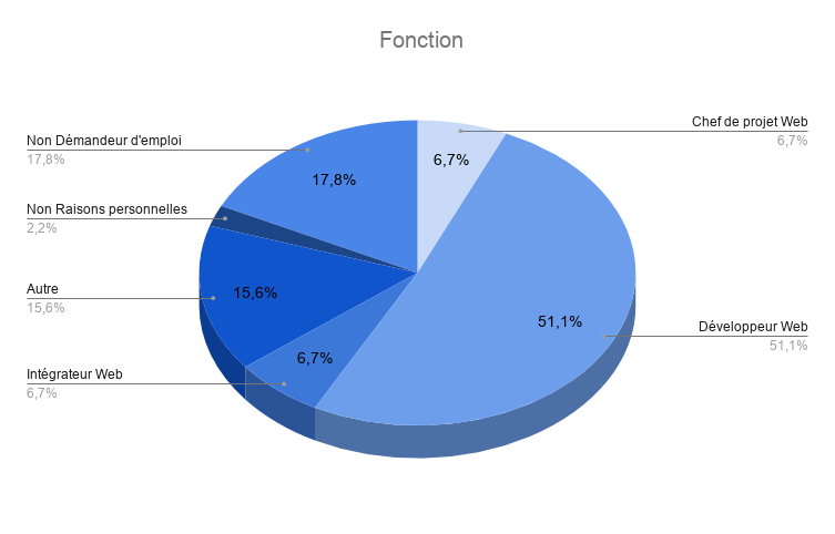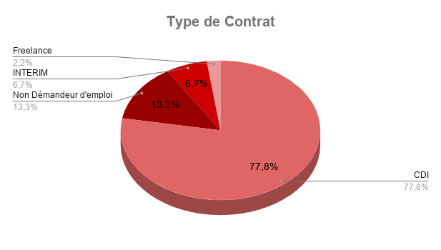 - 6 mois après le diplôme 80.1% avaient un poste en lien avec la formation (développeur web ou chef de projet web)