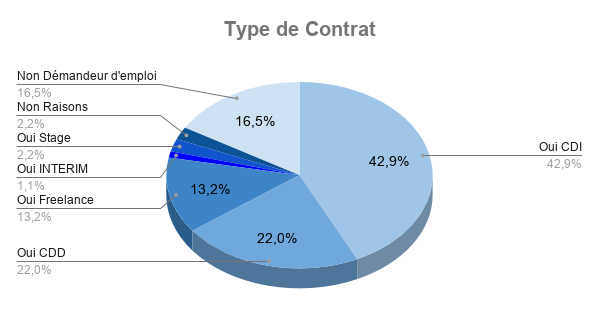 => 20.9% avaient un emploi différent : soit ils n'avaient pas trouvé juste après et ont abandonné, soit ils avaient trouvé mais n'ont pas réussi à faire perdurer leur expérience.