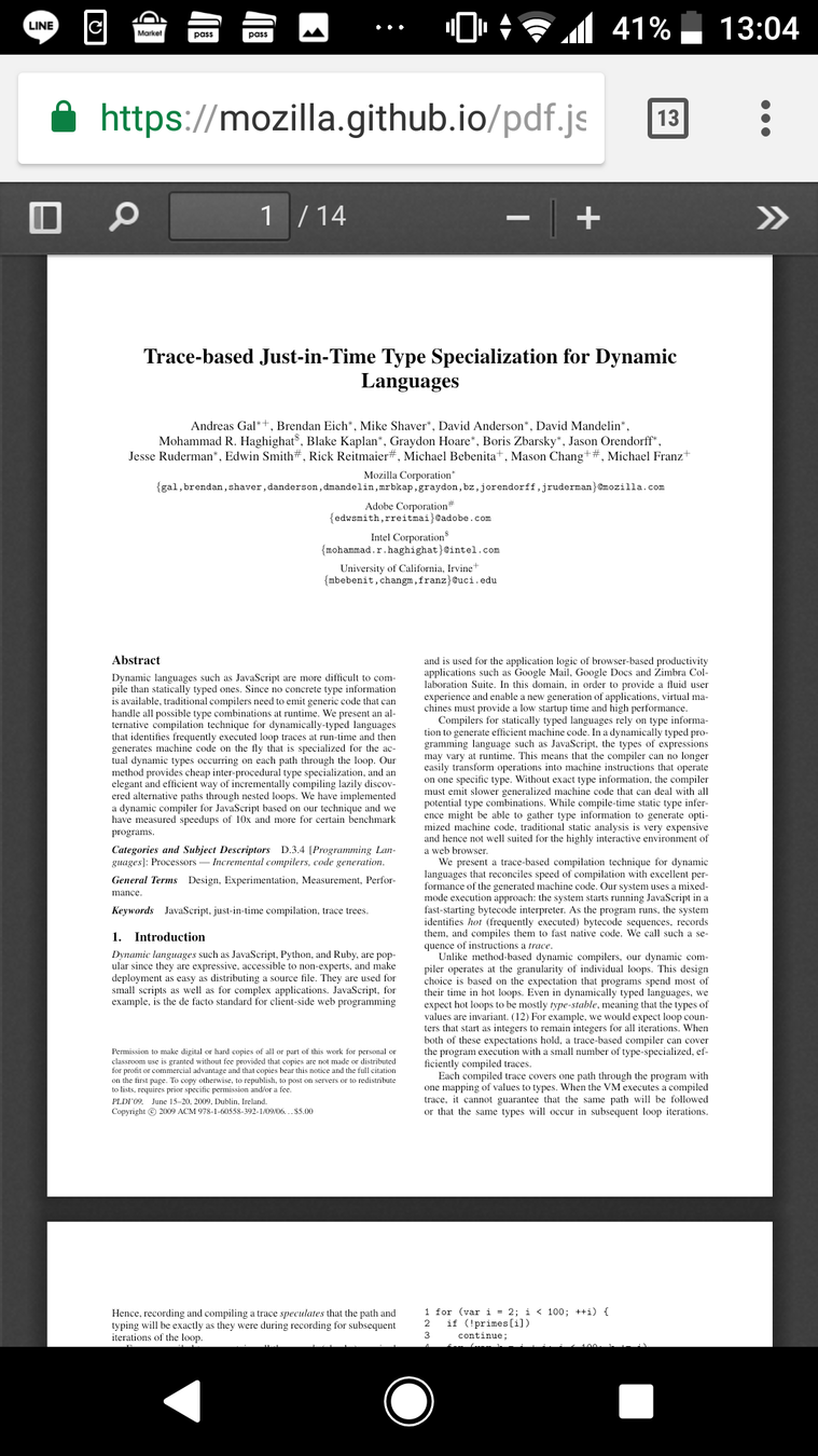 Mozilla がオープンソースで作っている PDF ビューワ.PC 版 Firefox に内蔵されている.