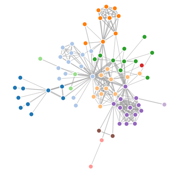 Graph visualisation is used to investigate community structure in protein-protein interaction networks.
