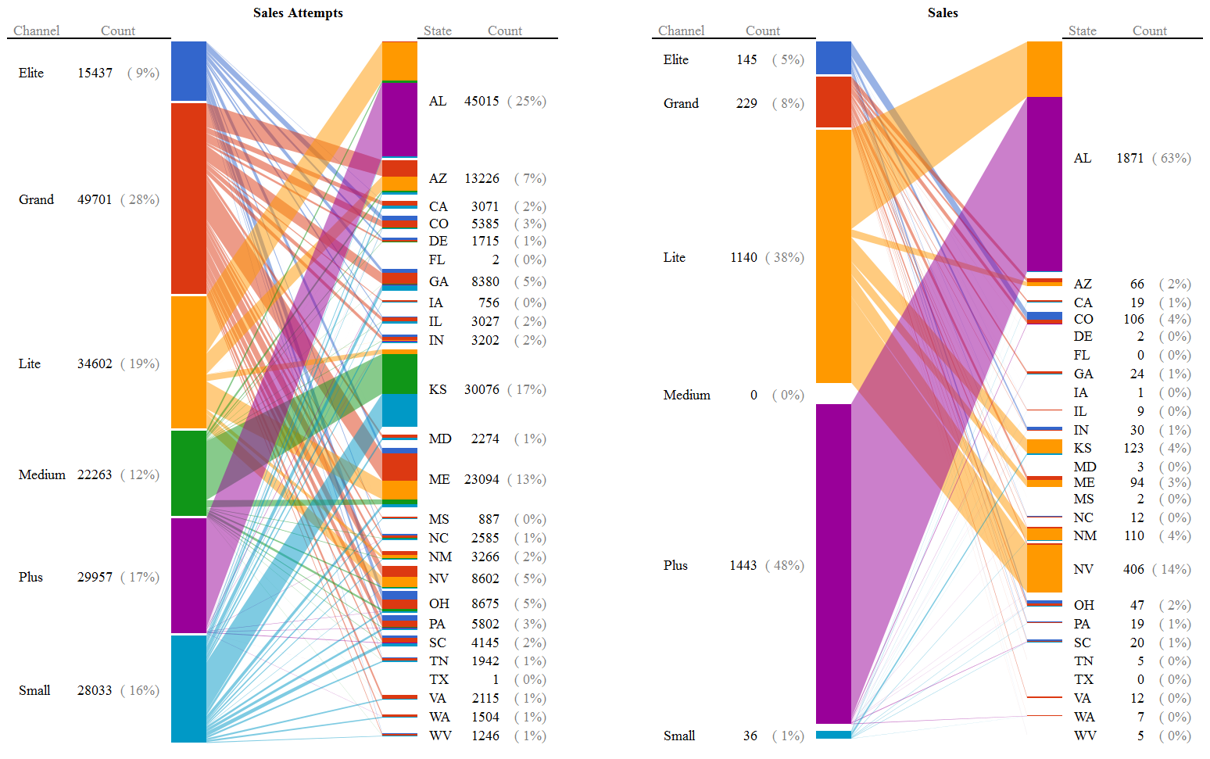 Edges with different thickness are used to represent the monthly calls by staffs.