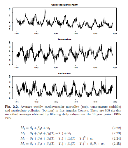 study by Shumway (1988) - possible effects of temperature and pollution on weekly mortality