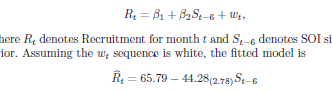 we want to predict the Recruitment series from current or past values of SOI series.
