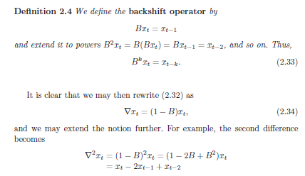 Differencing requires no parameter, BUT it does not yield an estimate of the stationary process yt as can be seen in 2.31.