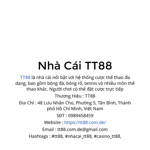 TT88 là nhà cái nổi bật với hệ thống cược thể thao đa dạng, bao gồm bóng đá, bóng rổ, tennis và nhiều môn thể thao khác. SĐT : 0989458459 Website : https://tt88.com.de/ Email : tt88.com.de@gmail.com