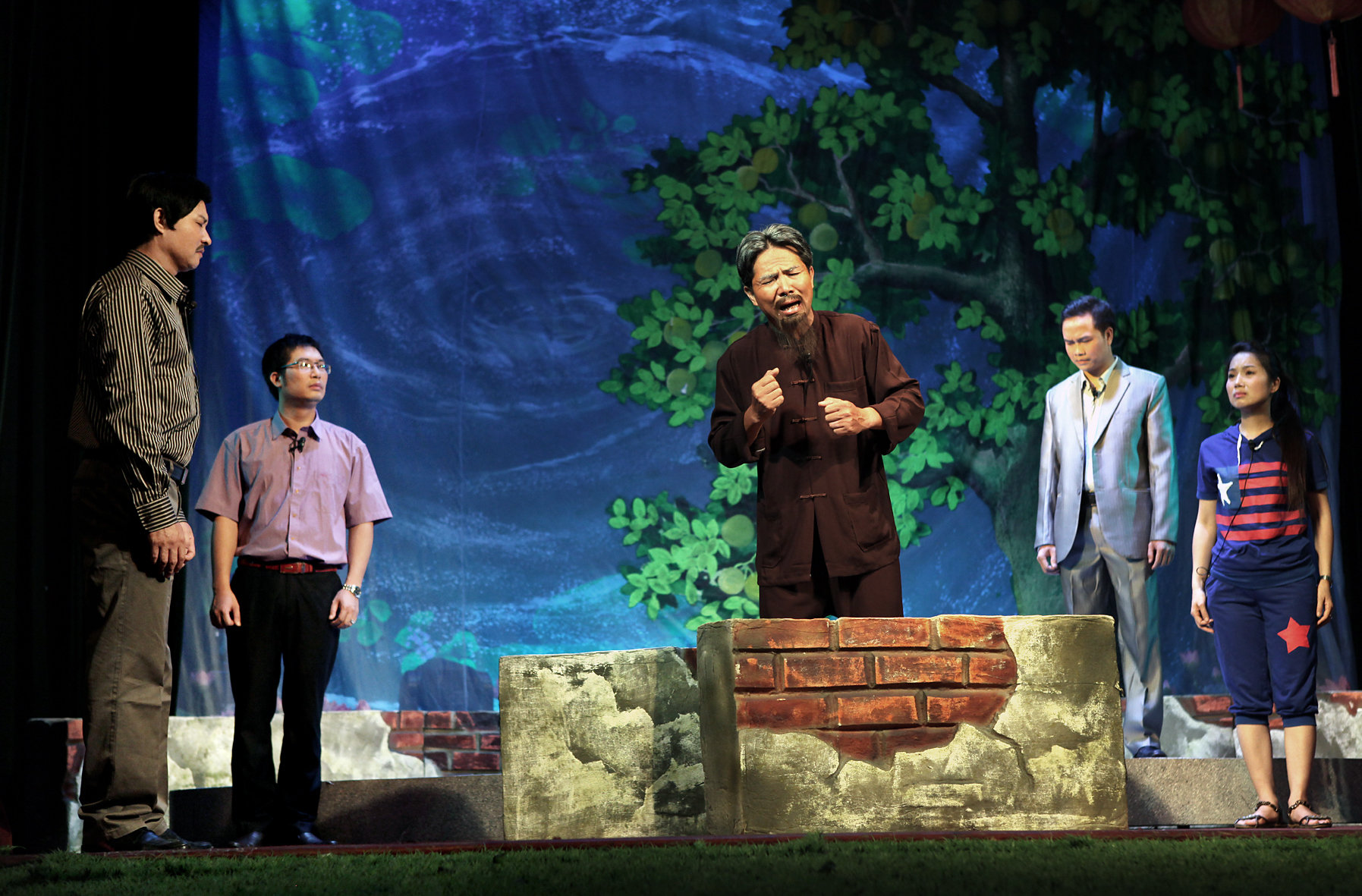 - Tranh cảnh trên sân khấu cũng được chọn lựa sao gợi được bối cảnh nơi xảy ra câu chuyện.