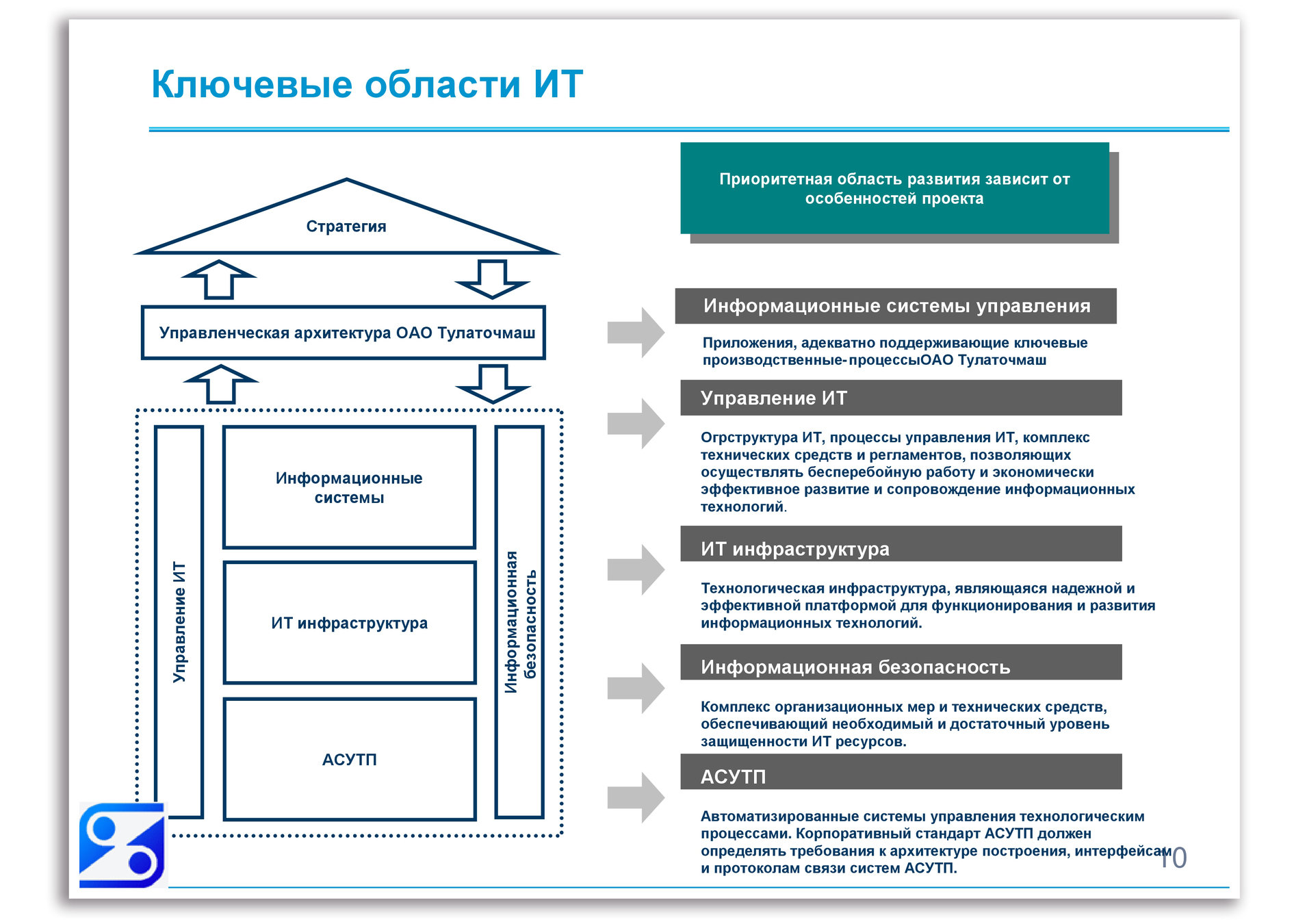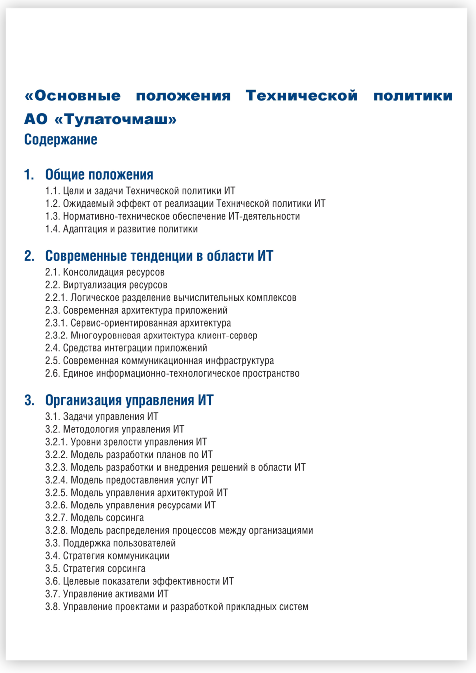 Техническая политика ИТ содержит совокупность технических требований и рекомендаций, определяет правила унификации и типизации технологий и оборудования, использование которых направленно на повышение качества ИТ-обеспечения сбора, обработки и хранения информации в информационных системах управления АО «Тулаточмаш».
