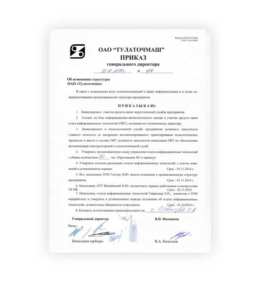 Отдел информационных технологий (ОИТ) АО «Тулаточмаш»