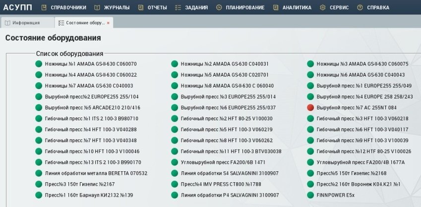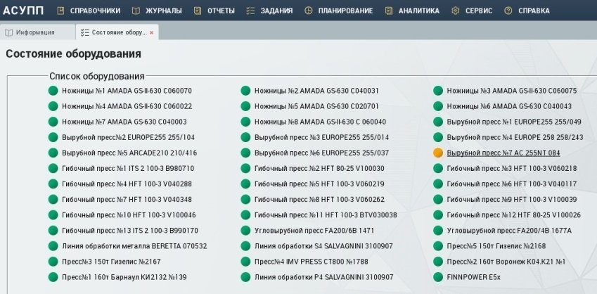 Модуль службы главного механика позволяет осуществлять контроль состояния оборудования. В случае выхода из строя оборудования, мастер участка в соответствующем интерфейсе отмечает данный Ресурс как неисправный, заполняя соответствующие данные о поломке (причина поломки и т.п.).