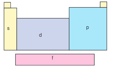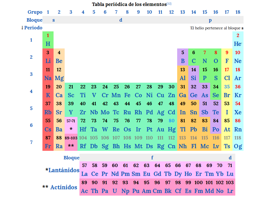 La tabla periódica se divide en 4 bloques: s, p, d y f.