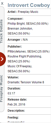 To find the different music tracks/ Score music I will be using a copyright free website ( Freeplay Music) to get my favorite top ten tracks we could use.