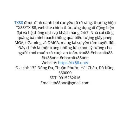 TX88 được định danh bởi các yếu tố rõ ràng: thương hiệu TX88/TX-88, website chính thức, ứng dụng di động hiện đại và hệ thống dịch vụ khách hàng 24/7. Nhà cái cũng quảng bá minh bạch thông qua biểu tượng giấy phép MGA, eGaming và DMCA, mang lại sự yê