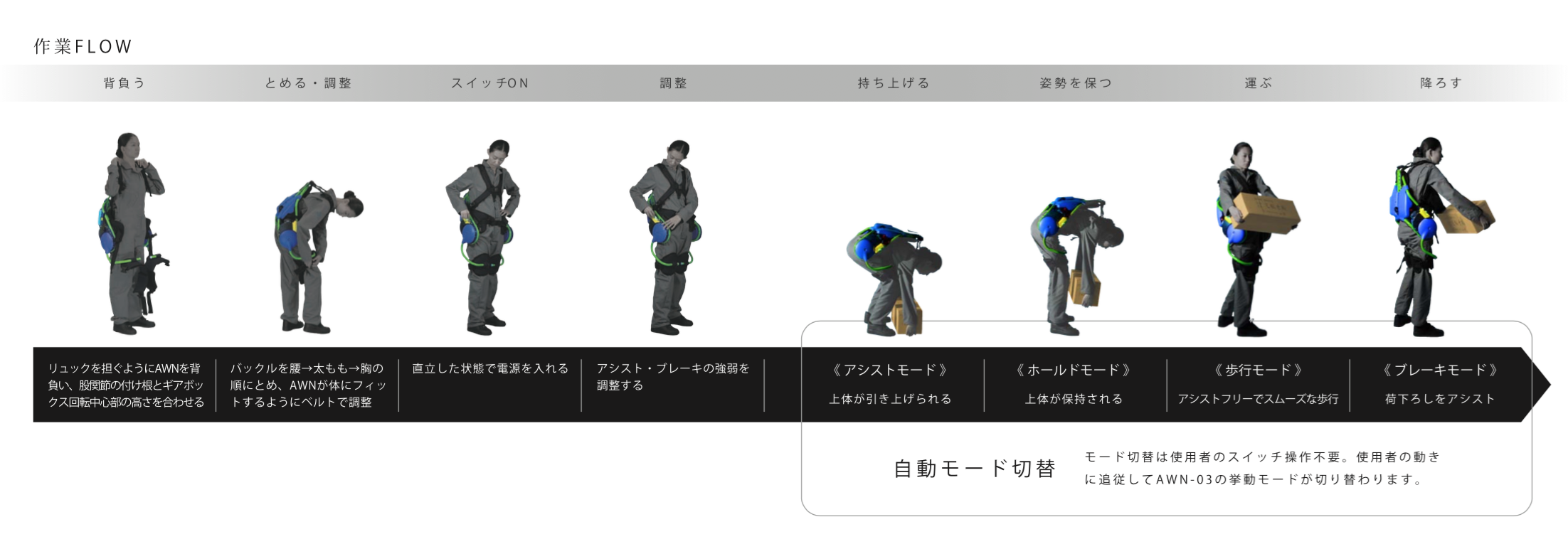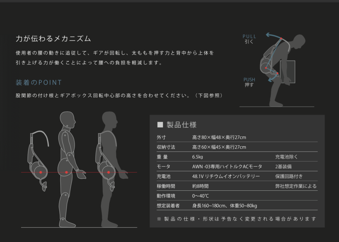 - 錯誤動作可以完全使用到機器性能 幾乎不用出任何力氣能將物品舉起,幾乎可完全避免錯誤姿勢的傷害
