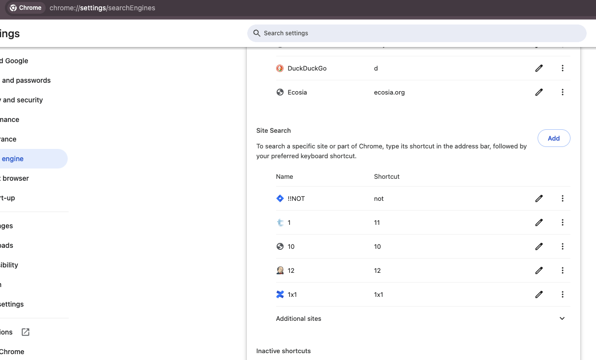 Type chrome://settings/search in url bar