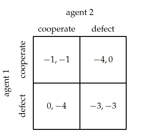 u_{1}(\sigma) \geq \max _{\sigma_{1}^{\prime} \in \Sigma_{1}} u_{1}\left(\sigma_{1}^{\prime}, \sigma_{2}\right) \quad u_{2}(\sigma) \geq \max _{\sigma_{2}^{\prime} \in \Sigma_{2}} u_{2}\left(\sigma_{1}, \sigma_{2}^{\prime}\right)