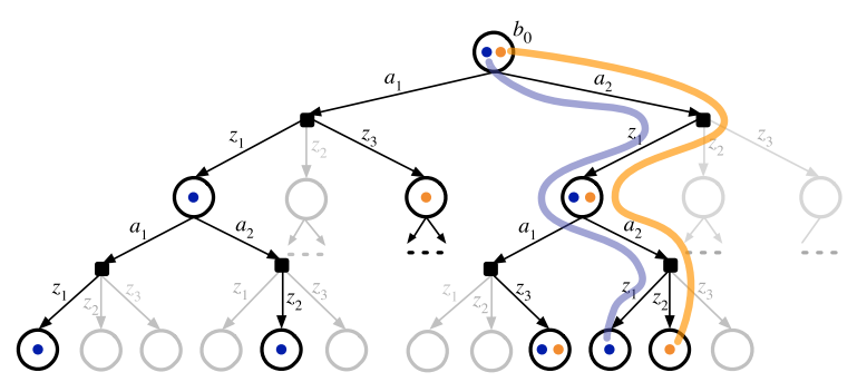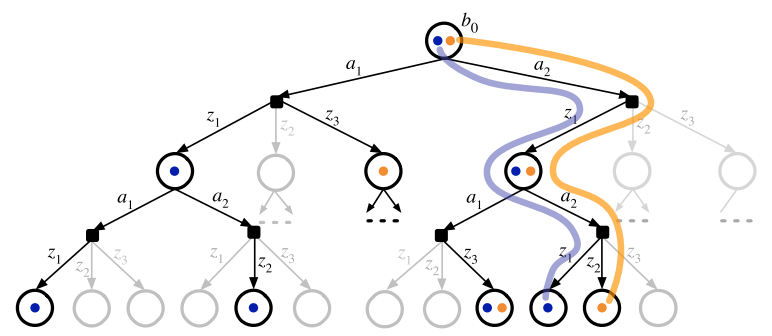 - Using \(C \le K\) scenarios at each belief-action node to generate observation branches