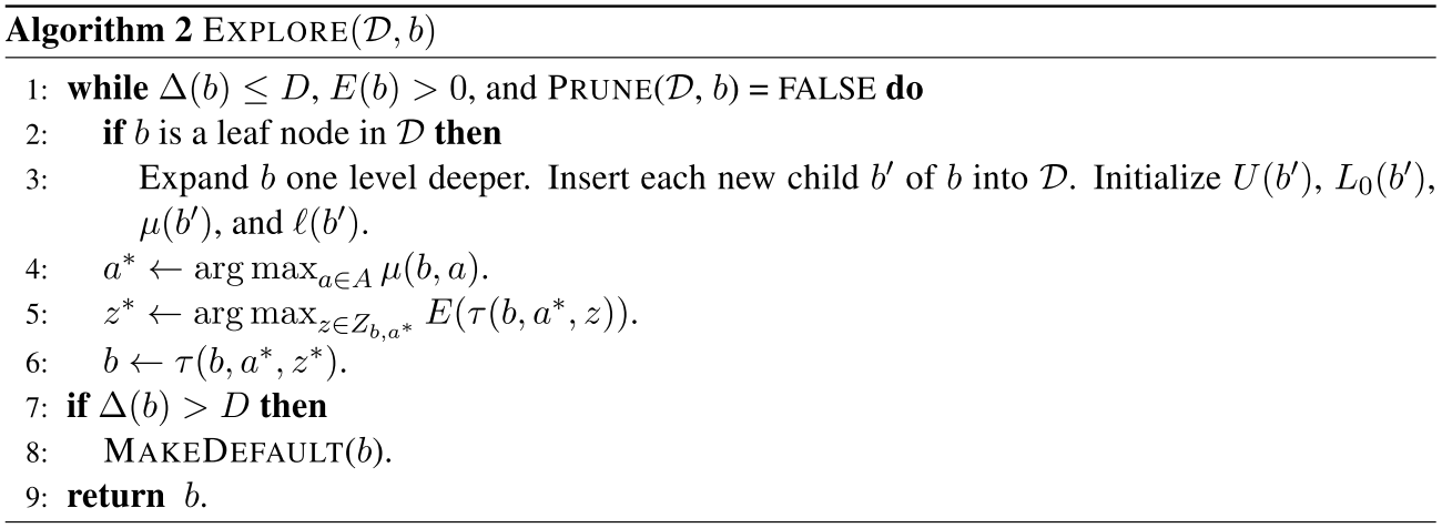 Cease exploration once \(E(b') \le 0 \). Exploration beyond this point yields minimal RWDU bounds contraction