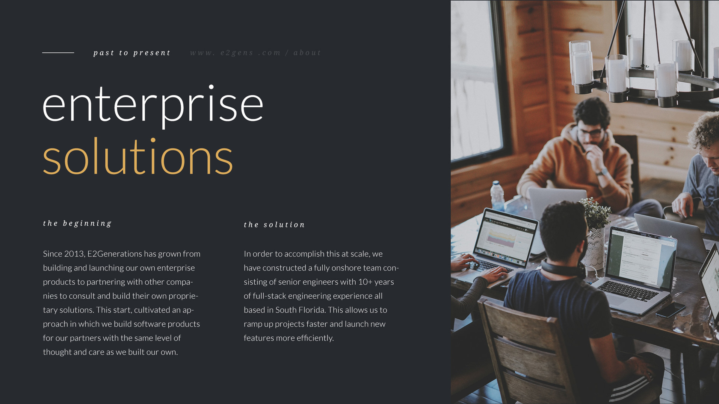 A brief overview of the process and capabilities of E2Generations for large system applications.