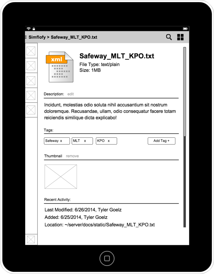 Along with the details and actions viewable on a mobile device, the user will also see a short description, tags, and document type.