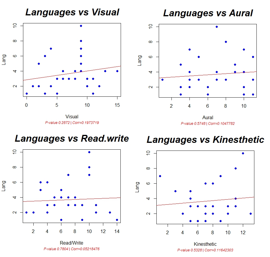 No linear relationship between learning style and number of languages used