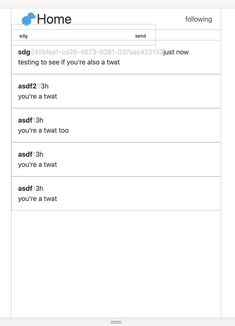 where users can post tweets, follow/unfollow others, and is able to see the 10 most recent tweets in the user’s news feed.